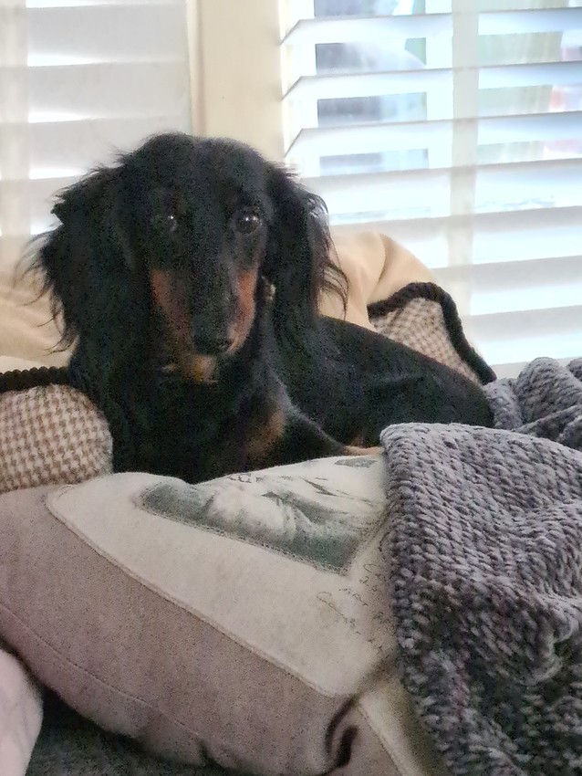 Wij hebben een langharige dwerg teckel, genaamd Balou (2jaar) ik zal een foto meesturen.