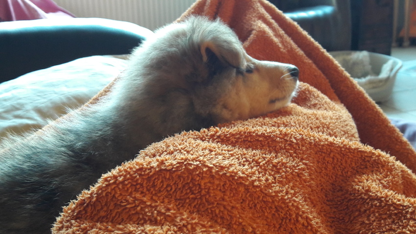 En hij is heel braaf ook. Beter kan bijna niet denk ik. Ik mag niet klagen. Maar het blijft natuurlijk veel werk en hij vraagt veel aandacht. Volgt op de voet. Naar wc, afwassen ... gelijk wat altijd mee. Maar dat is normaal.