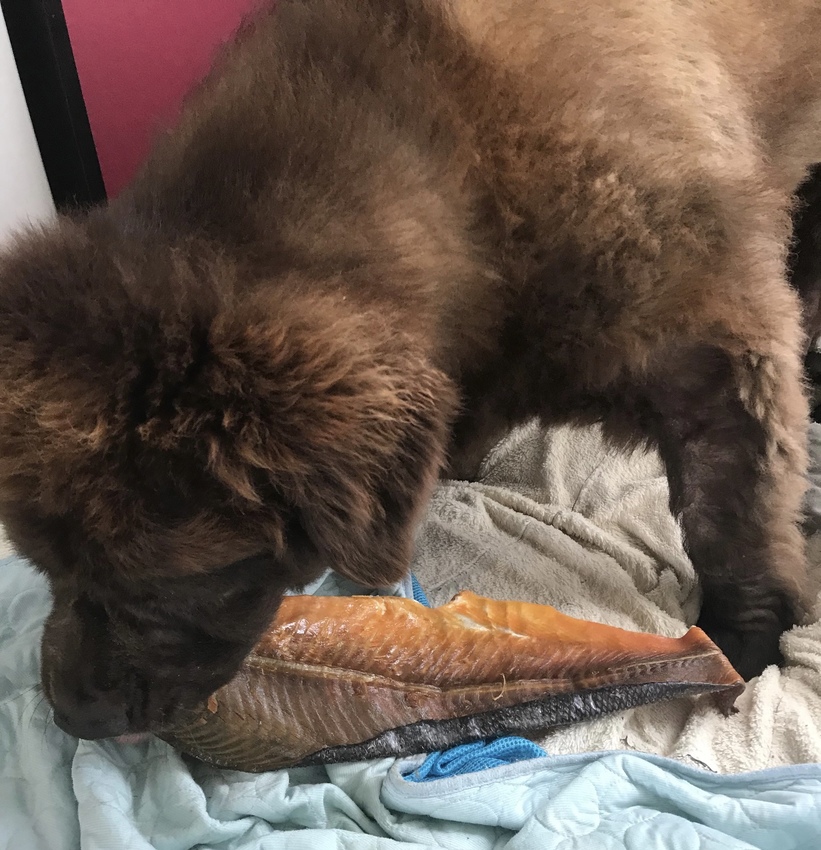 3 doggies Ze eten hier als pup al gedroogde kippennekken, eendennekken, poten, vissen… nog nooit problemen mee gehad.