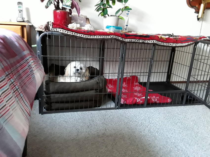 Na een paar dagen heb ik haar beneden in de bench gelaten maar ik heb al snel een ren voor haar gekocht, dit was toch fijner als ik even weg moest.