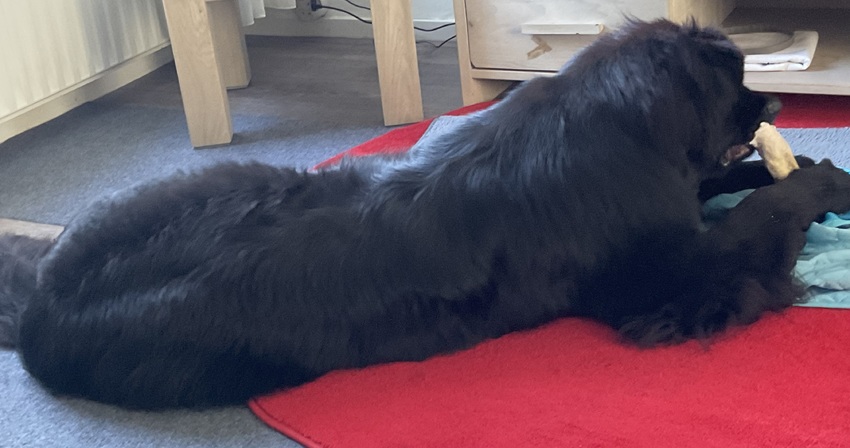 Zo leuk, Vika gaat bekenden accepteren, ze begroet ze uitbundig en gaat naast ze zitten…..vind ik goed tot…ze op de bank wil klimmen er naast, oeps, hahaha, vind het geweldig dat ze zo uit zich zelf bekenden begroet maar tot hier en niet verder…..even een, nee …en ze gaat op een plekje liggen op afstand…….. ze gaat het steeds beter doen, ze wordt eindelijk een bengeltje…even was ik de kamer uit of, ik kwam terug en…ze had de afstandbediening gepakt, als kauw materiaal, nee boos wordt ik er niet om, moet het ook niet in bereik laten liggen, nu weet ik het , en ruim alles op, ze heeft een lekker bot en daar kan en mag ze op kauwen.