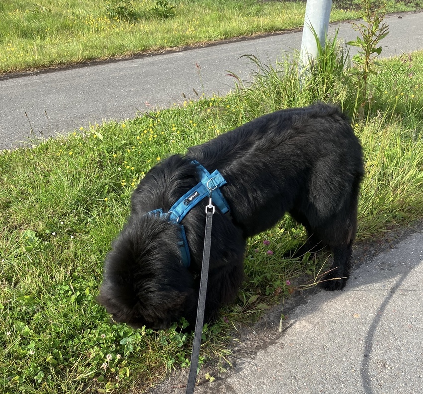 Straks wandelen, als ze goed heeft uitgebuikt, probeer dr uit de struiken te houden.