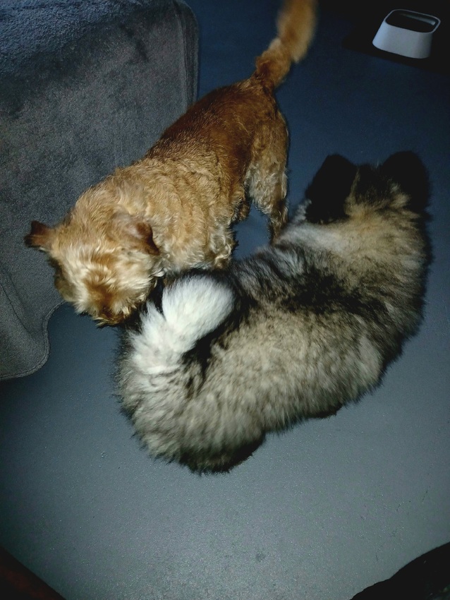 Het gaat goed met Lucie en Binkey. Ze zijn lief voor hem, zo lang het niet te lang duurt. Lodie slaapt nog veel, dus dat komt goed. Af en toe zet ik ze ook even apart.