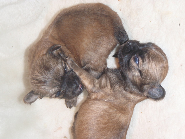 hihi Ja inderdaad Veronique & Spike een 'blond'cup zkr van 3oo gram op 2 weken leeftijd :-P nee dit zijn hele gezonde, goed groeiende pups met fci stamboom