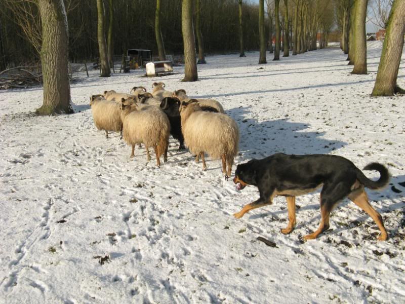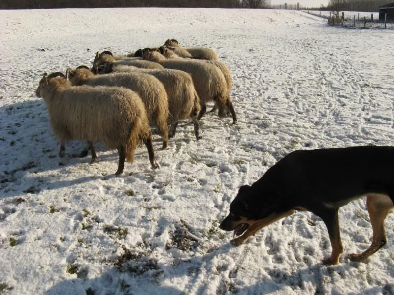O.A kort er op willen zitten, en zijn outrun afsnijden. We zijn nu dus langzaamaan opnieuw aan het opbouwen. Mijn teef daar in tegen werkt ruim van zichzelf, dat is echt een verademing. Ze is alleen behoorlijk pittig waardoor je haar goed in de gaten moet houden, anders duikt ze er op, pikt ze er 1 uit en gaat ze er achter aan..