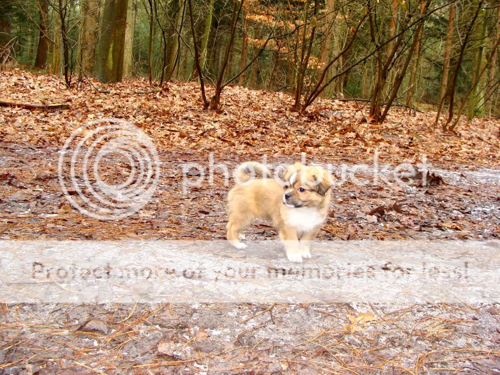 We waren naar het bos gegaan, eerst even opgetild en daarna lekker laten lopen, beloond als hij luisterde naar zijn naam, (voor kaasjes doet hij alles) en toen los gelaten. De eerste minuten ging hij de boel verkennen. Bleef af en toe snuffelen en staan en reageerde niet op zijn naam. Was niet erg want het was veilig en natuurlijk moet hij even wennen, was een leuk gezicht.