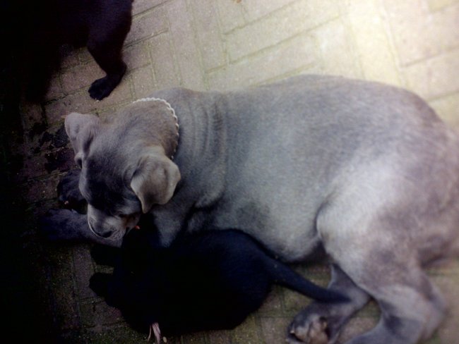 Maar hier wat foto's van Pachina met onze pups van labradors.