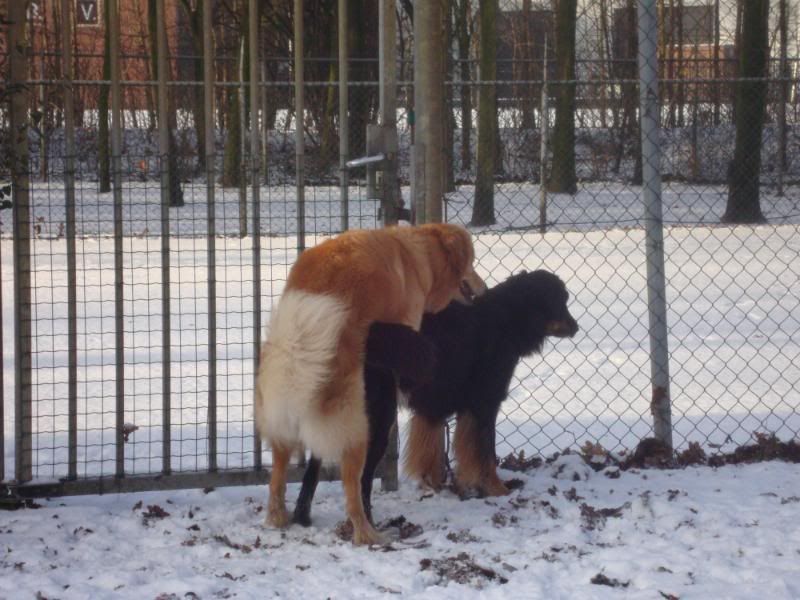 ze vond het blijkbaar heel leuk Timber uit te dagen, draaide vlotjes haar staart opzij, ging ostentatief met haar kont voor de opgewonden kerel staan