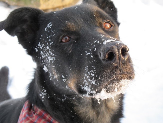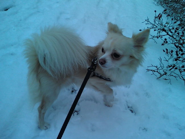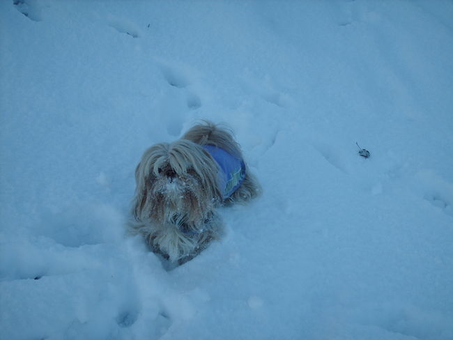 Net weer terug van een wandelingetje in de sneeuw, het is al laat dus Charlie kon lekker los en genieten van de sneeuw.