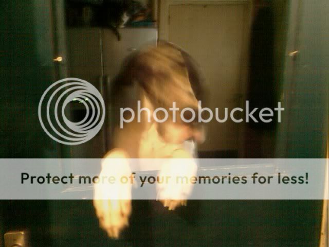 We kwamen thuis van Boodschappen en toen heb ik deze foto van diego gemaakt. Hij zat in de bijkeuken, en heeft toen het raampje van pvc eruit gebroken en dan krijg je dit resultaat haha.