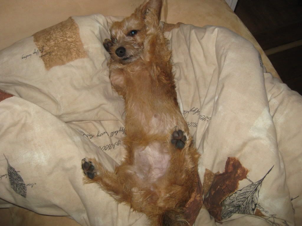 Ik kwam zooooo'n schattige foto tegen!!! Zoey 1 weekje oud en uitgebreid op haar ugje liggen met haar blote puppenbuik omhoog!