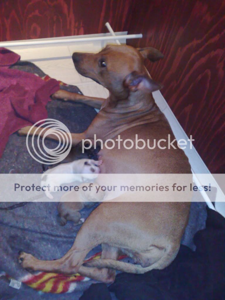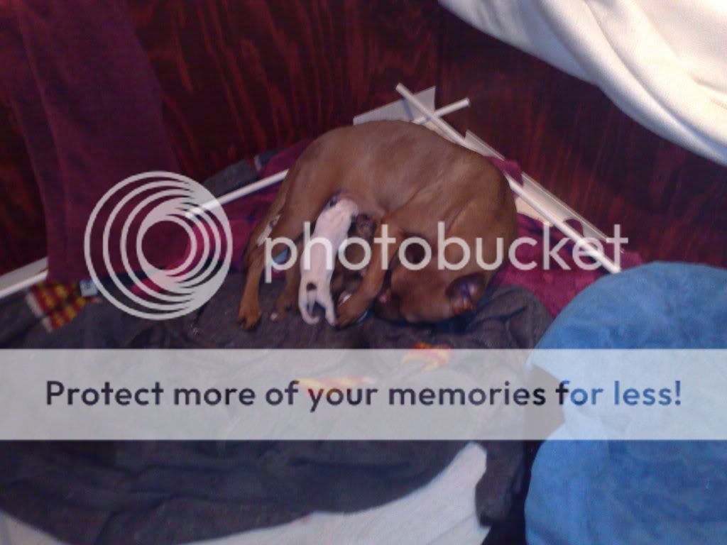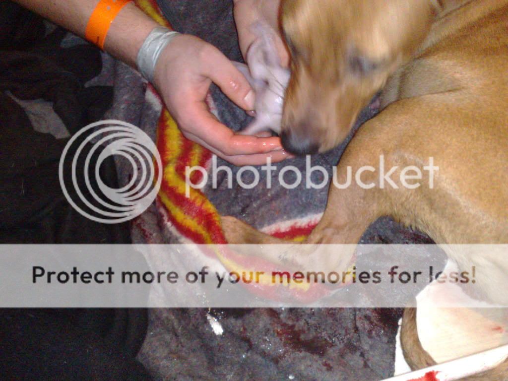 Ik ben echt ontzettend moe, omdat er veel spanning van mij is afgevallen. Ik was bij de 1ste pup wel iets nerveus of het goed zou gaan. Maar bij 3x persen was de volgende pup er al uit. Ik ben blij dat ik ver van te voren mijn 'studie' heb gedaan zodat ik wist wat mij te wachten zou komen te staan! Ik bedank ook de mensen die hierboven diverse (extra) tips hebben gegeven. Ik raad mensen aan, die willen fokken, of binnenkort een nestje krijgen, veel voor studie te doen. Het geeft je een hoop minder -postitieve- stress, en je weet wat er je te wachten staat! Jane heeft zo goed als alles zelf gedaan, en volgens 'het boekje' de pups ter wereld geholpen!