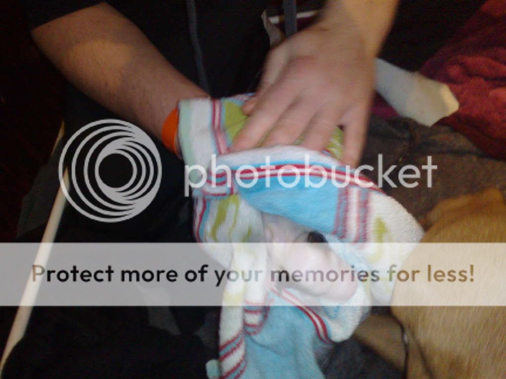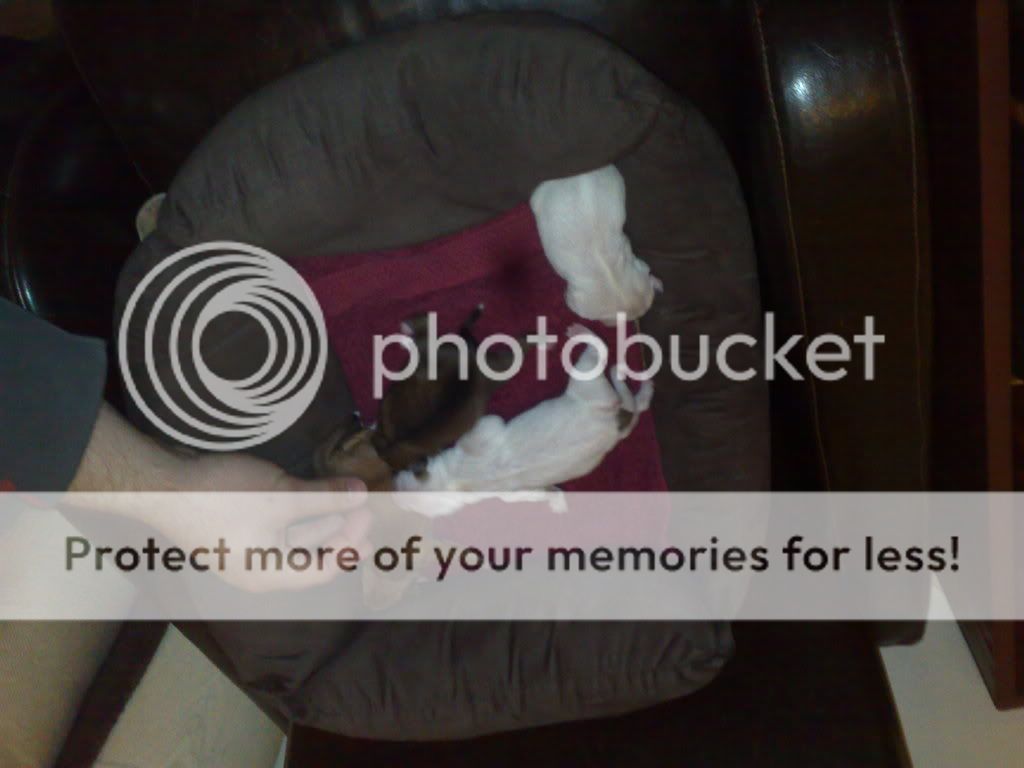 Hoppa, pups weer terug in dat andere mandje en Janey een klein beetje helpen. En dat gepiep als je ze warm/droog wrijft: PIEP! Zo hoog en hard, haha. Een teken van leven gaf mij een zeer grote en blije glimlach! Soms ook af en toe een vreugde