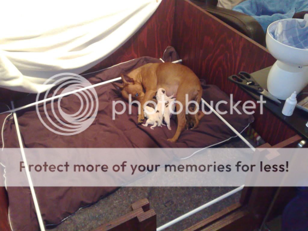 P.s. Ik weet niet zeker of ik het wel of niet had vermeld, de pups drinken vanaf het allereerste moment dat ze 'droog' waren. Jane likt ze, legt ze een beetje terug aan de tepel, en laat ze vooral heerlijk slapen!
