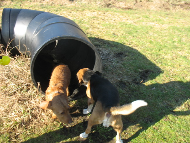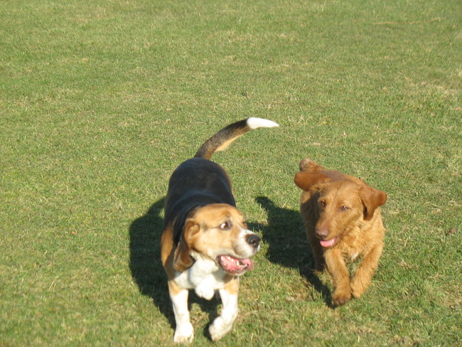 maar nu met vrienden die een beagle hebben die ook niet goed los kan,