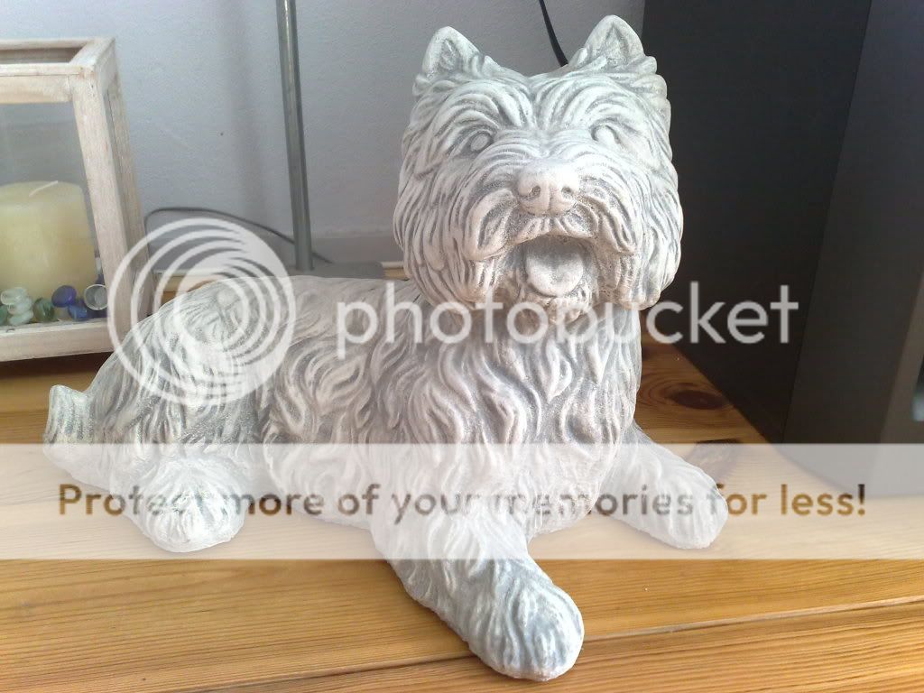 Wij hebben gisteren een betonnen beeld gekocht van een gelijkenis van onze Westy Iggy, nu staat het beeld nog binnen in de huiskamer, maar wij willen die van de zomer bij haar favoriete plaatsje zetten in de tuin, waar ze in de zomer altijd lag, en een gaatje aan het graven was, zijn er nog meer mensen die een betonnen beeld van hun hondje in de tuin hebben staan, om zo een manier te vinden om je hondje nooit te vergeten, ook al zit ze voor altijd in ons harten gesmolten, en zullen we haar nooit en te nimmer vergeten.