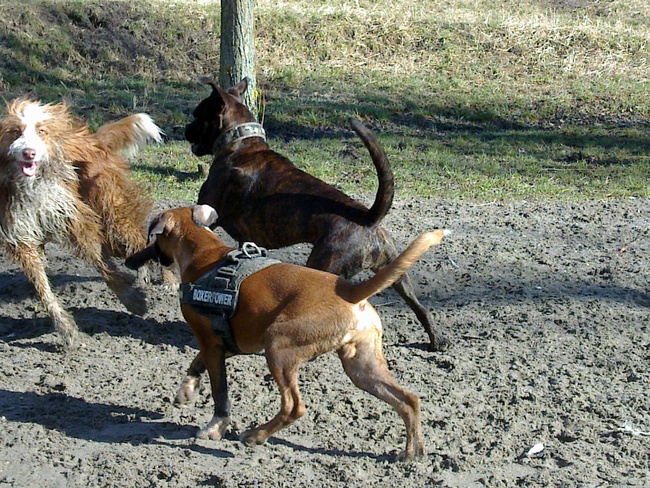 Als ik met alle 3 mijn honden loop, en kom dan een hond tegen die niet bij ons hoort..