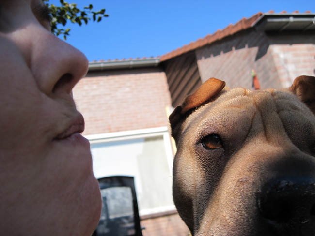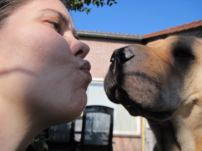 Ik was even met mijn dames in de achtertuin Abby is al twee dagen heel erg verliefd op mij en geeft ineens mij allemaal kusjes.