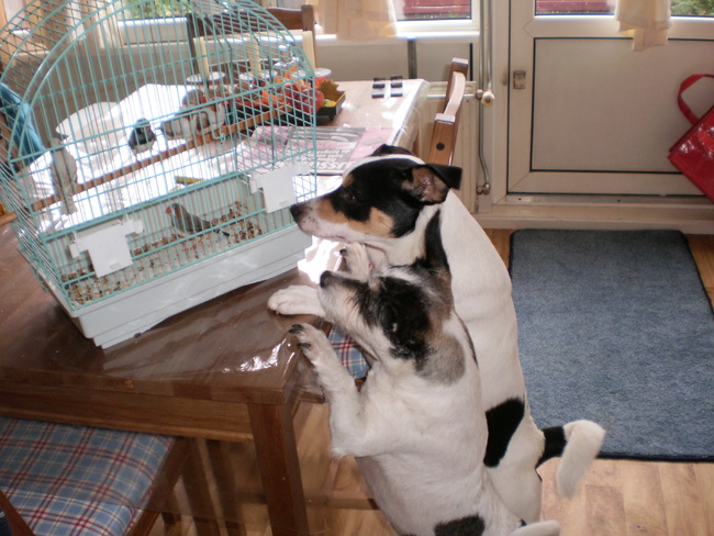 Wat een prachtfoto's Jo. Geweldig hoe ze beiden de vogelkooi inspecteren, lekker nieuwschierig