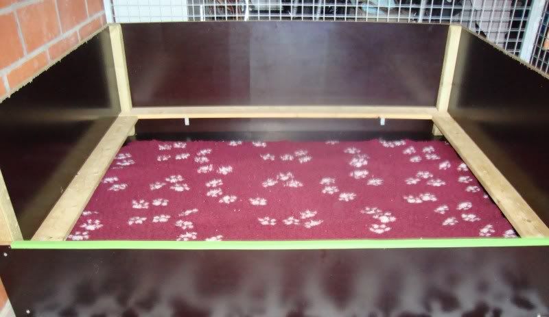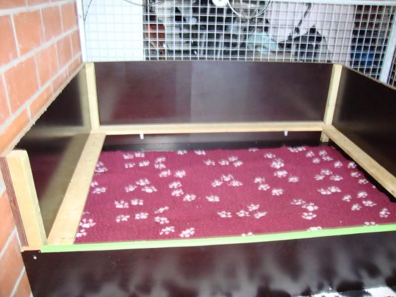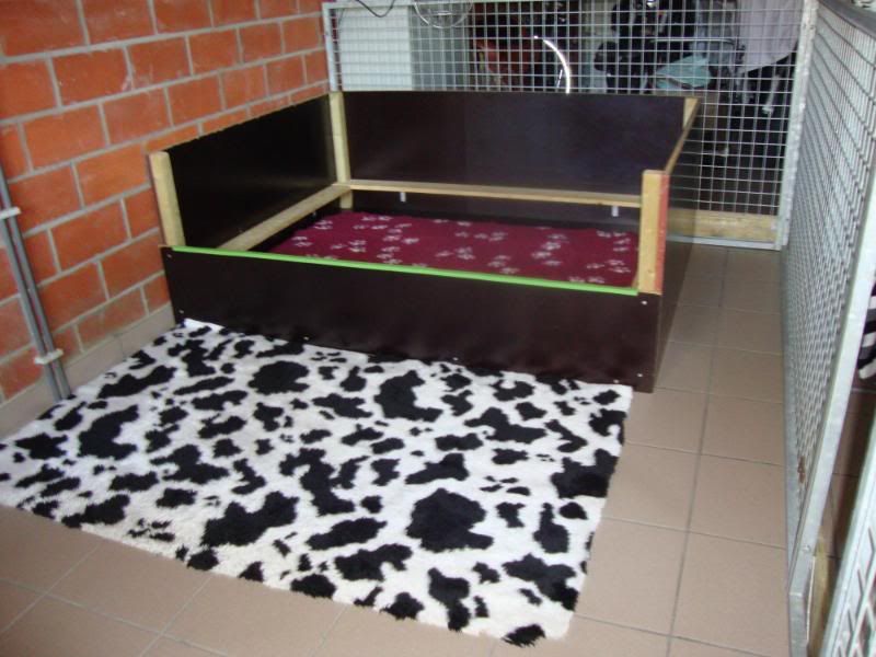 een zacht vetbed op de bodem en ook nog ééntje voor de kist en eromheen staat weer een puppie-ren voor als straks mijn kleine ukkies gaan rondcrossen....