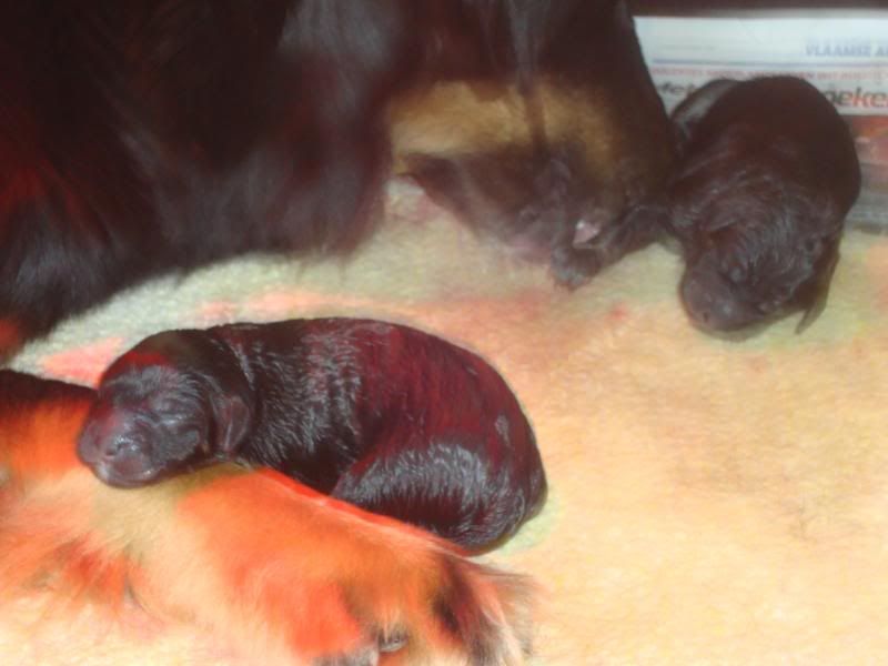 het heeft even geduurd en het spijt me dat jullie zo lang in spanning moesten zitten maar de afgelopen uurtjes was het hier ook extra spannend, vandaar... Laat me vooraf even stellen dat alles goed is met moeder en pups en dat ik vermoed ??????????????????????? dat ons meisje nu klaar is, alhoewel...