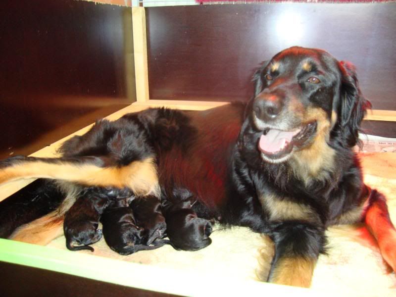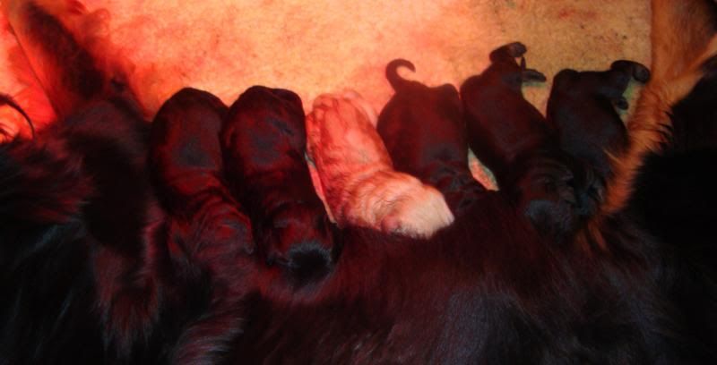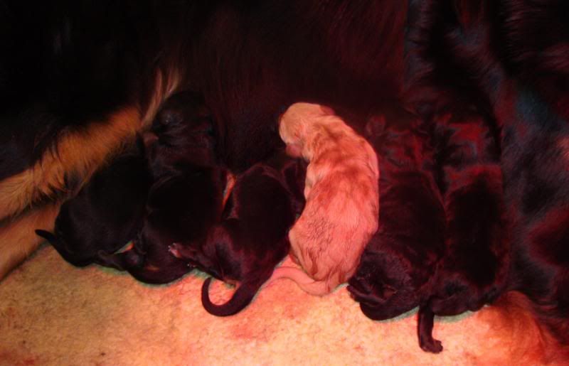er zijn nu dus 9 pupjes, blond en black/tan, 3 reutjes en 6 teefjes...Een pracht van een geschenk, maar of ze nu echt klaar is ??????????????????????????????Denk dat ik nog maar even standby blijf net als Dees