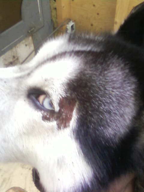 zoals Sharon hierboven al vermelde, denk ik ook heel sterk aan DEMODEX(mijt). Het komt me heel erg bekend voor, als klein kaal plekje aan het oog en het zal steeds groter worden. Middel bij de DA voor te deppen en hopen dat het weggaat en anders kan het nog op meerdere plekken uitbreken en dan zal de hond in zijn geheel moeten worden gedept indien het demodex is!