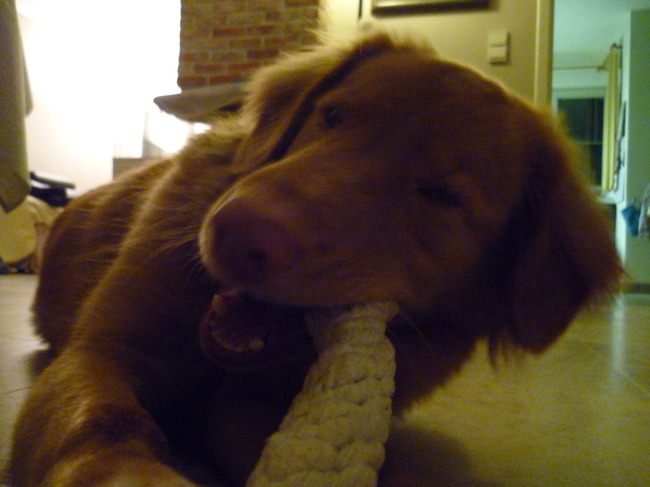 En voor de puppen van het nestje bij de fokkers van Athos, ze hebben er uren mee gespeeld voor ze gingen eten en slapen.