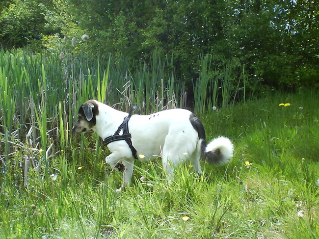 Wou wat schattig dat koppie het lijkt net of ze echt lacht super hoor en jou andere hond op jacht leuk hoor mooie fotos` groetjes Anita.