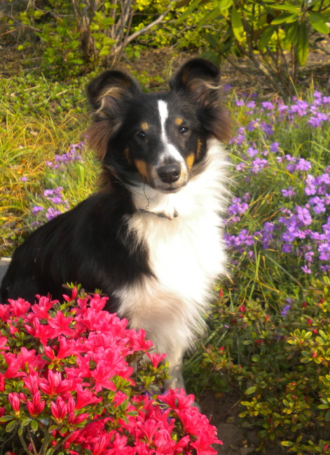 Prachtige foto"s van de honden en het weer was er goed voor zo gezellig bij de bloemen