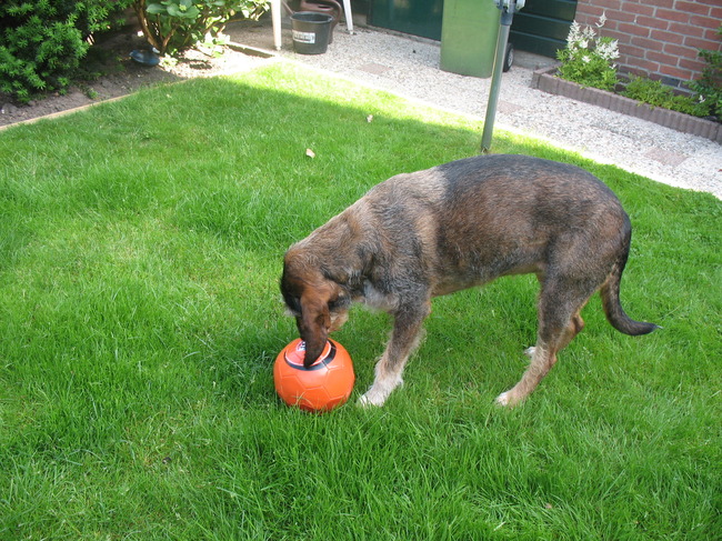 Taat spaart haar krachten voor vanmiddag net voor dat de wedstrijd begint bijt ze de bal kappot hahahahaa geen bal meer om mee te voetballen hihi.