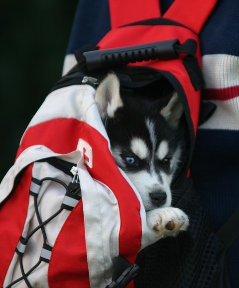 en nog te jong om een heel stuk mee te wandelen met de andere honden.