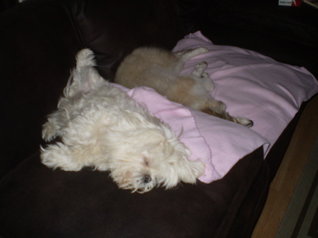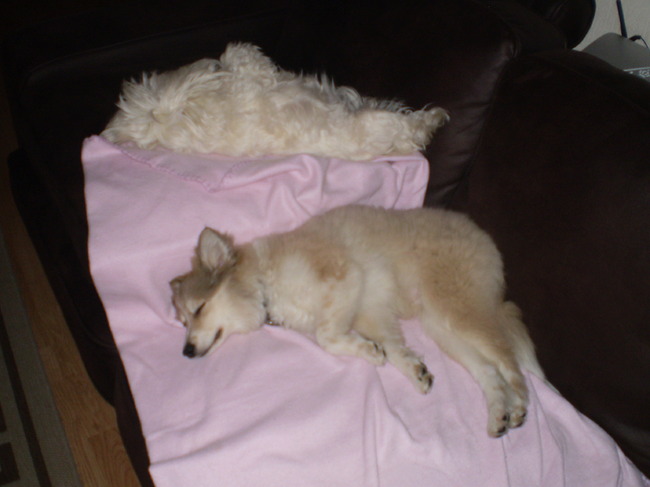 ze hebben nu een mega-groot matras dus ze hebben niet te klagen. de enige die het soms nog missen zijn de baasjes. want het was toch wel heerlijk zo'n knuffelkont op schoot