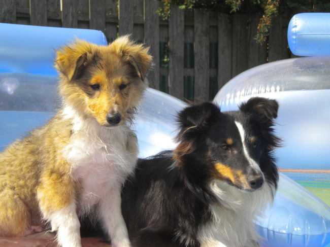 vandaag mocht ik van het vrouwtje voor het eerst in het grote zwembad dat in de tuin staat,
