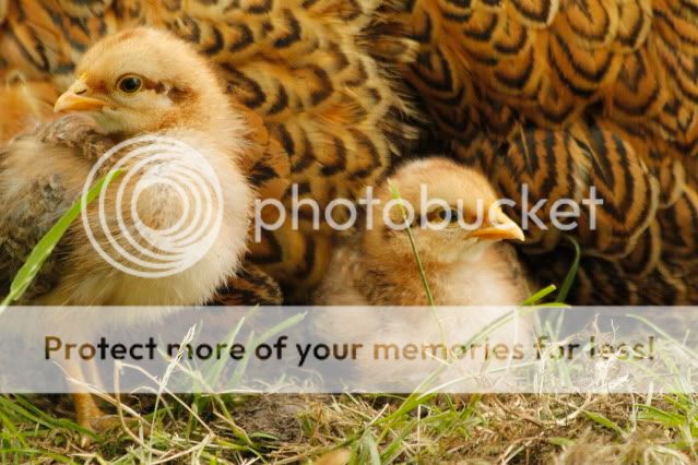 , staart omhoog en oortjes strak naar boven en dan maar haantje de voorste in de gaten houden wat die gaat doen, schitterende foto`s en leuk die kuikentjes