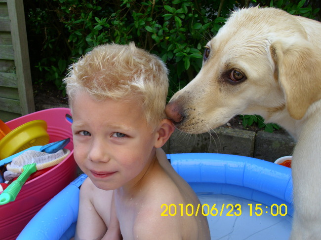 Dat ze vriendjes zijn is wel duidelijk!! Leuke foto!! Veel waterpret voor alletwee!!