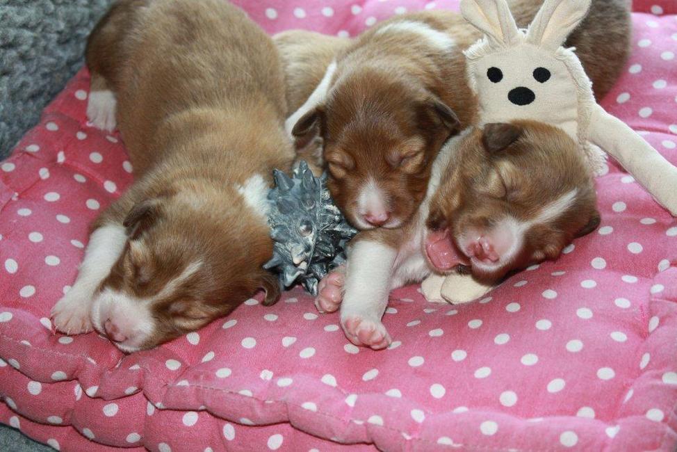Ik zou het echt niet aandurven, knap dat jij dat wel durft zo met drie hondjes waarvan 2 pups! Maar dan heb je straks wel een super knappe roedel bijelkaar gespaard
