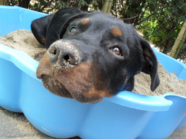 Wat fijn joh, dat je een zwembad én een zandbak hebt gekregen! Kan me voorstellen dat die zandbak heerlijk is om lekker in te rollen.