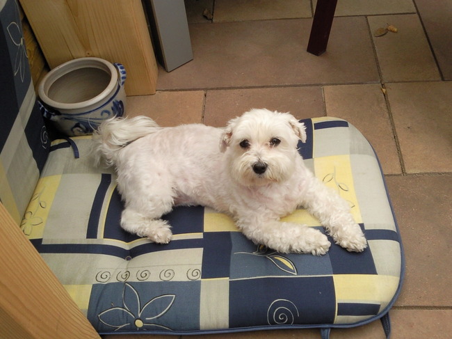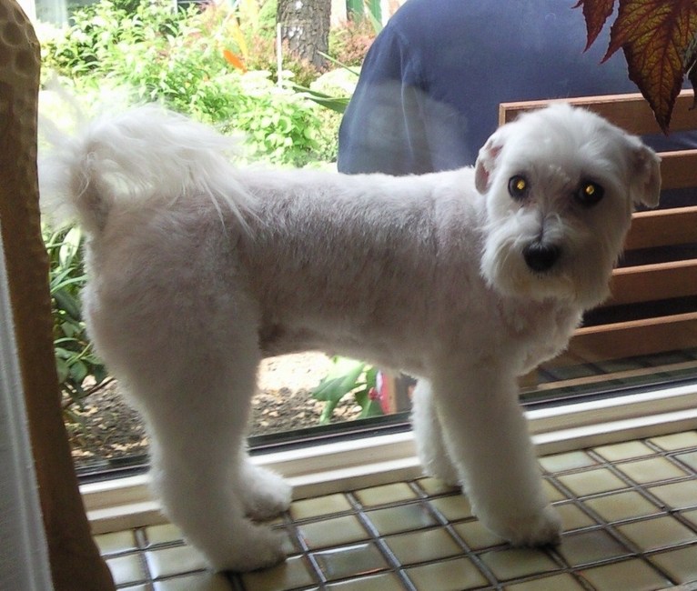 ik heb sam hier ook al eens heel kort laten knippen en 2 maand later hing het weer bijna tot op de grond, aan de ogen had ik zelf al verschillende keren moeten knippen want anders zag hij niets meer