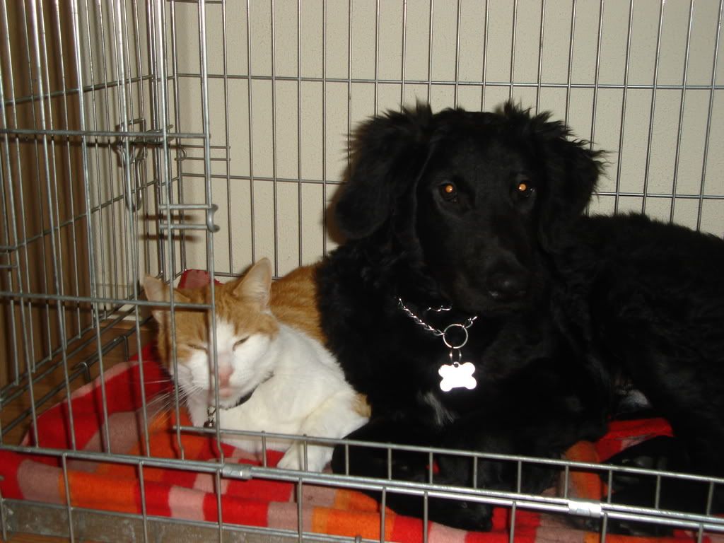 Ook hebben we nog een kat (Luna). Dat gaat de ene keer leuk met elkaar, maar vaker nog jaagt Zoëy er achter aan.. Maar soms kunnen ze lief bij elkaar zitten en s'ochtends geven ze elkaar kusjes..