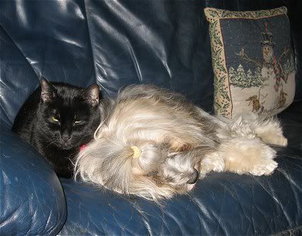 Ach wat achattig allemaal, die foto's met de poezen! En wat liggen ze lief bij elkaar... de kat van Yuki heeft zelfs een pootje om shadow heen...