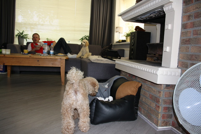Toen legde zzoef mijn poedel in zijn bankje en ging ik maar troost zoeken bij baasje op de bank..