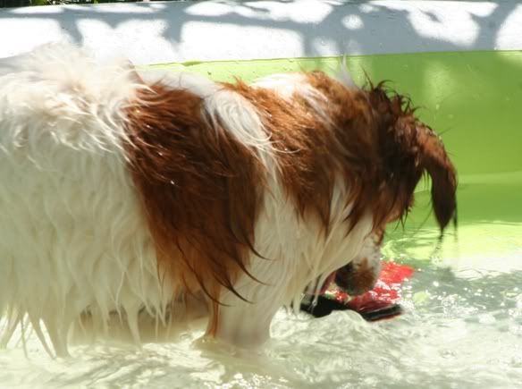 Als Coco in het badje wil leggen we een handoek over de rand,dat helpt wel goed, alleen wil zij er bijna nooit in en gaat alleen bij een sloot of meer als ze kan zwemmen.