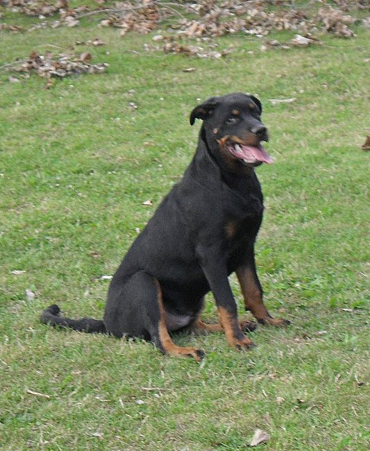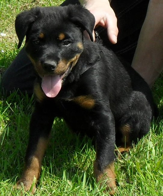 o ja daar had hij echt dat onschuldig puppie koppie en nu al een echte rottie kop. hij is ook groot zeg jeetje . word een grote jongen hahaha mijriam