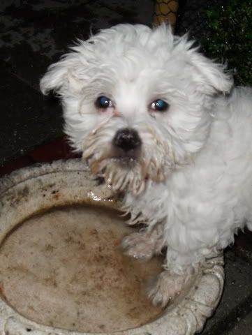 Natuurlijk heeft ze veel te veel water binnengekregen en tjah...dat moet er ook weer uit. Ging dus niet helemaal goed binnen; ze moest om de 2 minuten plassen.....