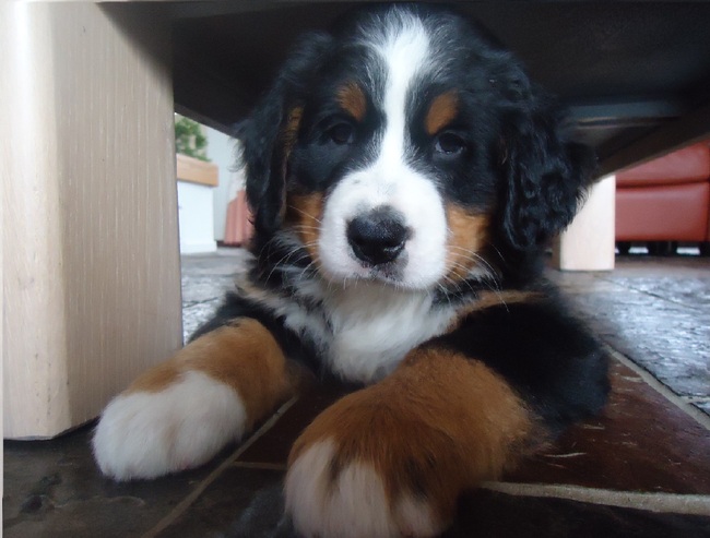 Wat een schatje zeg. Ze kijkt zo ontdeugend. Geweldig. Ik vind dat jonge pups nog zo'n prachtige blik in hun ogen hebben. Echt van die trouwe oogjes. Soms weet je dan niet of je moet lachen om hun streken terwijl ze je zo lief aankijken. Geniet ervan.