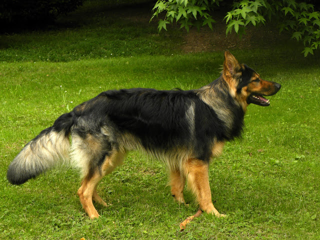 Deze herder heeft lichte onderwol die zeer waarschijnlijk ruit en door de donkere dekharen heen komt! Denk dat hij eens goed geborsteld moet worden. Dit zie je wel vaker!!