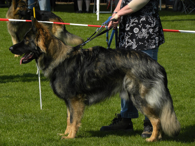 ik zie wel wat je bedoelt, vanaf zijn kraag en onderborst zie je een ring ? dat is niet verderfelijk, helemaal niet, bij herders is het niet zo van belang wat de kleuren zijn, als ze maar ras zuiver zijn voor de show. herders heb je in vele kleuren. deze ringen zullen ze niet gaan beoordelen.