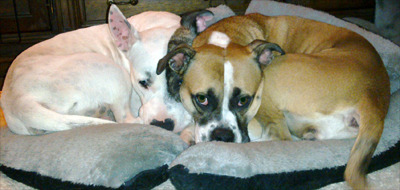 Zei de ene hond tegen de andere hond, schuif eens eens stukje op, ik wil me nog kunnen uit rekken. haha