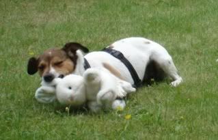 Chica heeft een "Hondje" dit hondje heeft ze al vanaf het begin en is voor haar helemaal het einde. Ze sleept het overal mee naartoe en speelt er het meeste in. Helaas voor haar moet hond ook wel eens gemaakt worden want soms gaat hij weleens stuk.